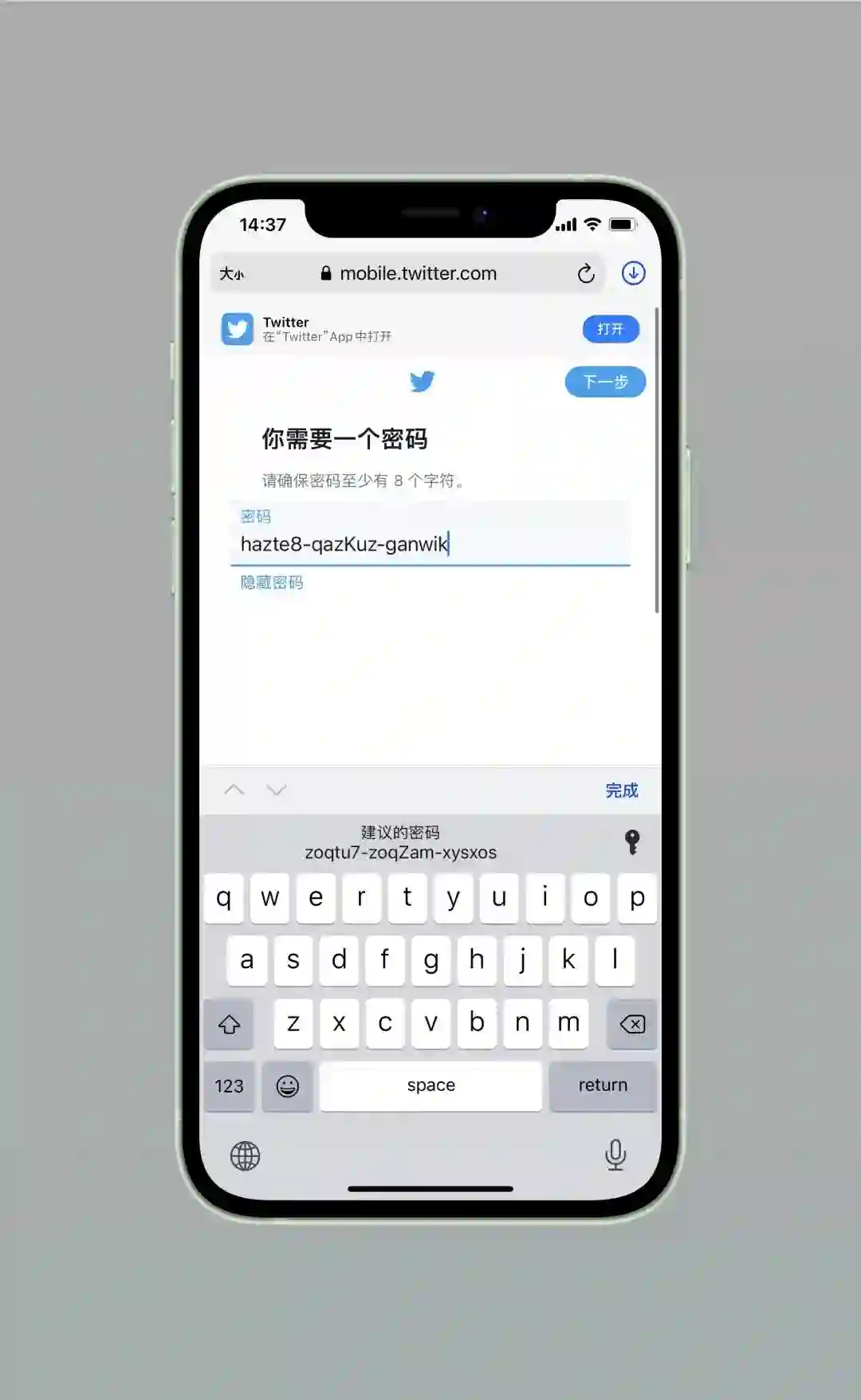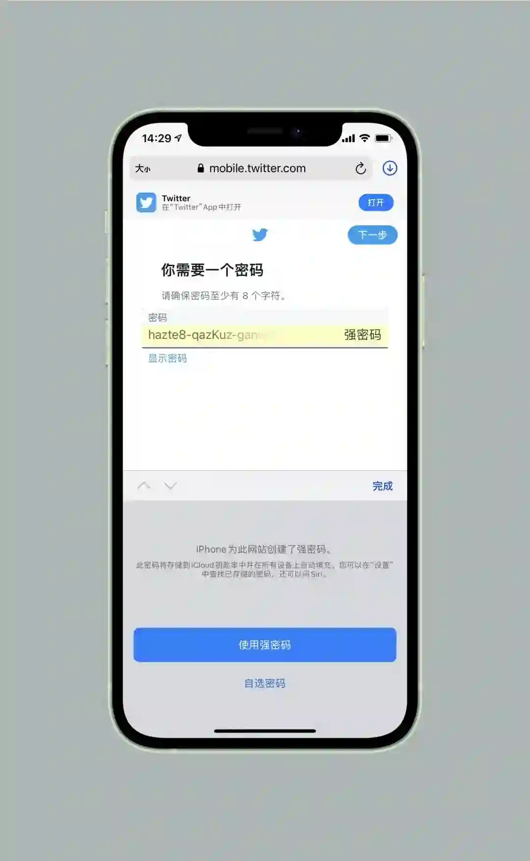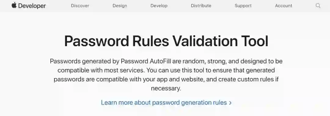 在 2018 年的 WWDC 大会上,苹果正式推出强密码功能 —— 系统会自动生成一串包含一些特定符号的密码,以尽量避免密码过于简单所造成的帐户遭窃及密码泄露等事件的发生,这一串密码长度通常为 20 个字符。
