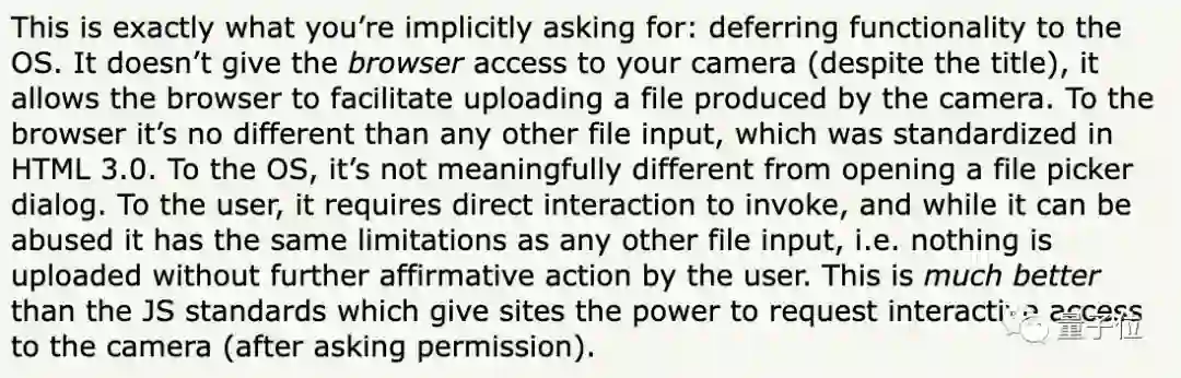 不过,小哥也指出:这种直接通过HTML指令打开用户用户摄像头的方式还存在目前不足,比如兼容性不太好。