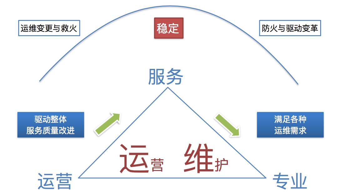 我们可以把运维理解为运营维护,运营是指通过经验积累、数据分析,推动整体服务质量的改进;维护是针对线上的服务,还有业务的需求,我们能够用专业的技术来满足他们。
