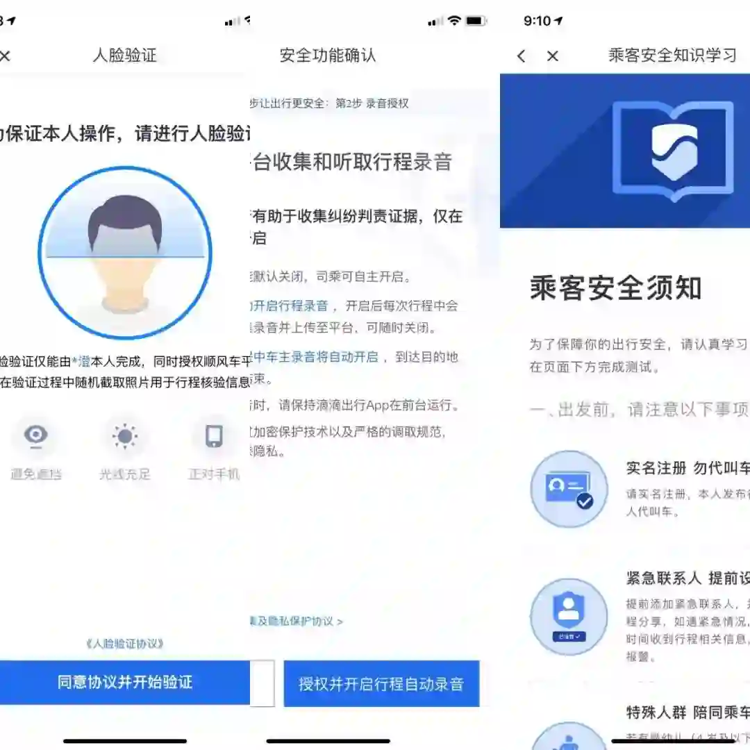 乘客需要完成安全任务,这一任务包括“实名信息认证”、安全功能确认和乘客安全知识学习。