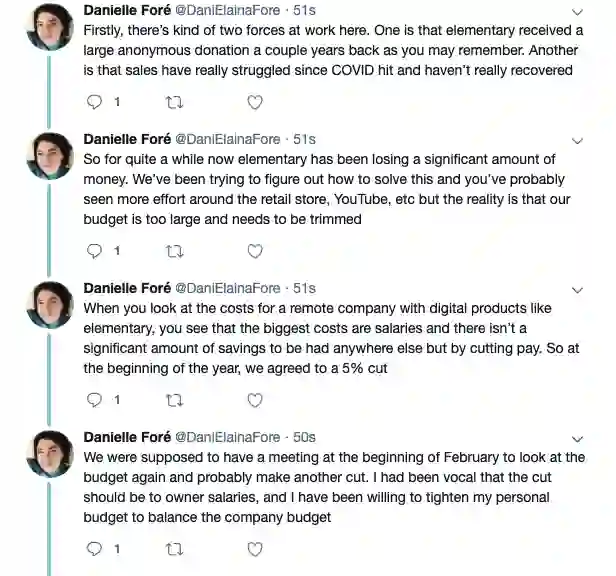 当你看一下像 Elementary 这样拥有数字产品的远程公司的成本时,你会发现最大的成本是工资。除了减薪,没有其他地方可以节省大量的资金。所以在年初,我们公司内部同意削减员工 5% 的工资。