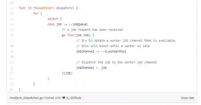 当使用Go语言通道时,我们决定利用通用模式以便创造一个2阶的通道系统,一个用于作业排队,另外一个控制多少作业者同时在JobQueue上操作。