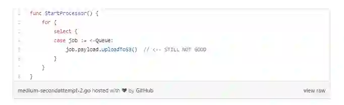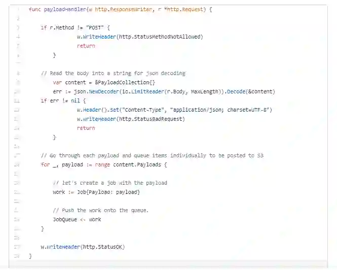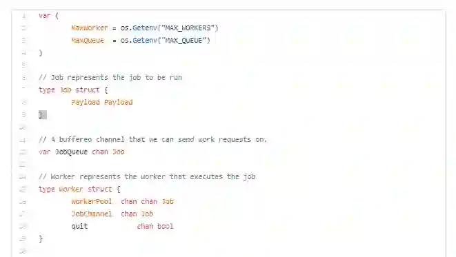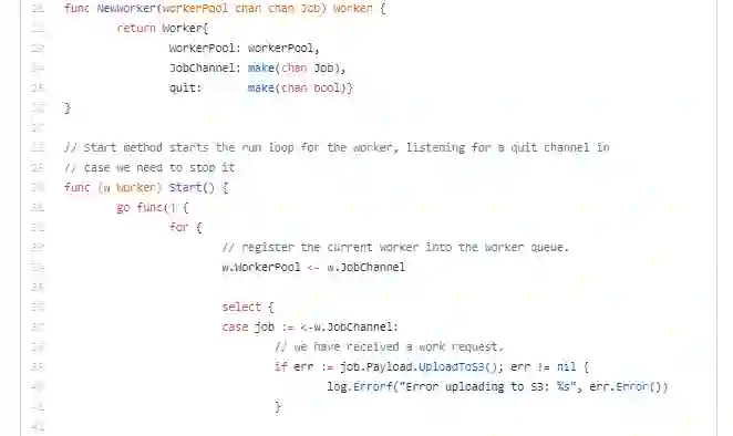 这个想法是以某种可持续的速度并行上传到S3,它既不会削弱机器性能,也不会从S3开始生成连接错误。所以我们选择了创建一个作业/作业者模式。对那些熟悉java,C#等语言的人来说,可以考虑采用Go语言实现通道方式而不是作业者线程池的方式。