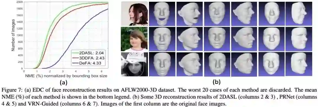 在3D人脸对齐方面该算法取得了目前的最高精度,超越PRNet。如下图: