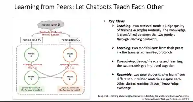 第一,学习能力。学习是人类发展进化并走向成熟的一个基本能力,对于对话机器人而言亦然如此。而对话机器人的学习能力有两个层次,一是能够从人类的对话中学习怎样去说话;二是当对话机器人发展得越来越成熟之后, 每个机器人可能都在各自专注的领域有很丰富的知识那是否有可能让这些机器人之间互相学习,从而实现信息共享和能力互补呢?