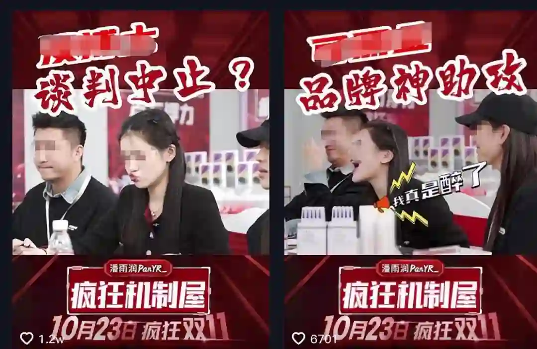 为预热双十一,潘雨润在线下设立“双十一疯狂国货展”,在线上也推出了疯狂选品会、疯狂机制屋等视频内容展现其选品、争取优惠的过程。但评论区“模仿得太假”“好尴尬啊”等负面热评相当刺眼。