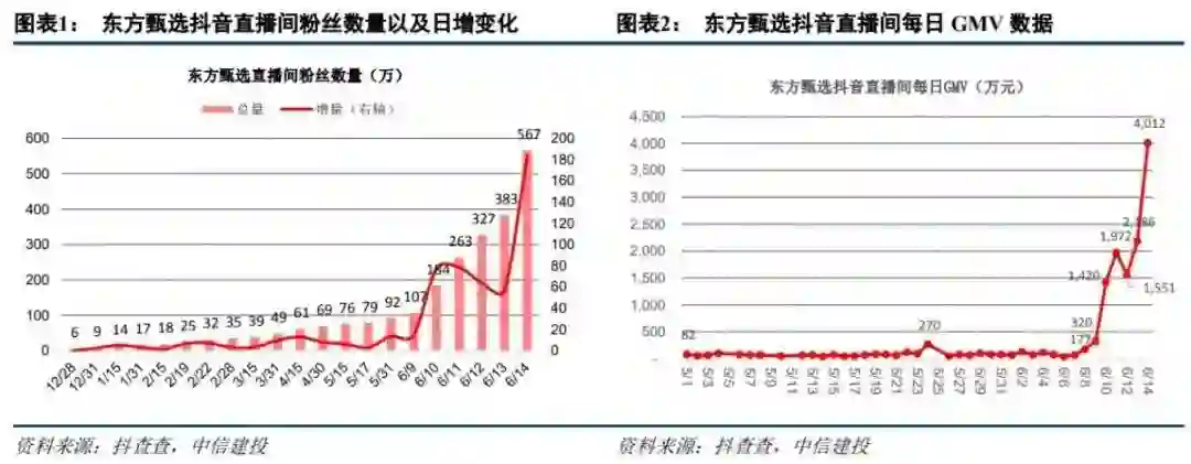 董宇辉出圈前后东方甄选直播间的相关数据/来源中信建投研报