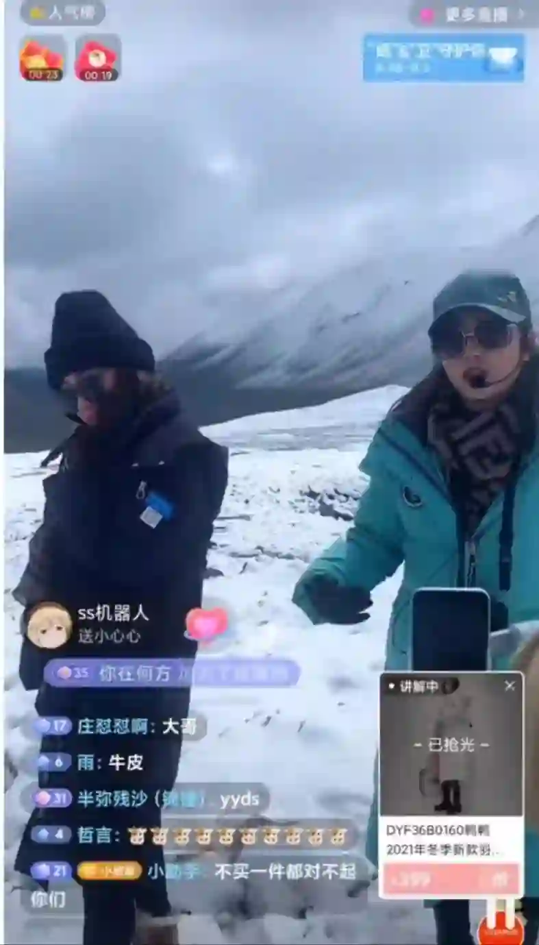 此前鸭鸭羽绒服将直播搬到了西藏雪山之上,创新场景打开了中腰部主播们的新思路。
