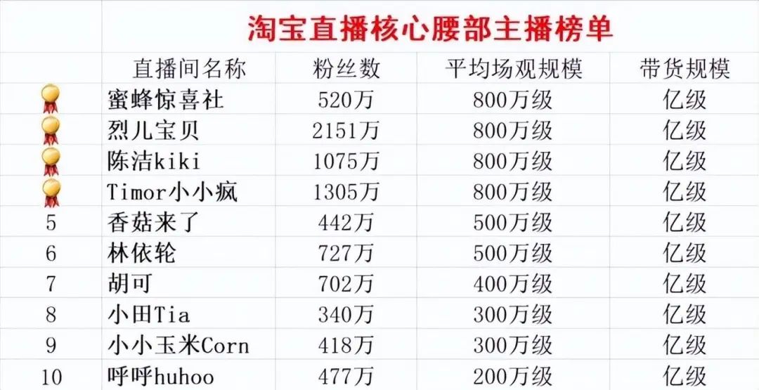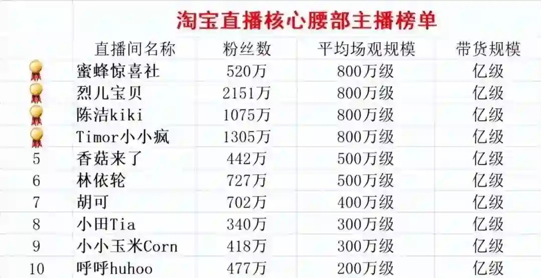 淘宝直播上的平均场观top10主播/来源:中国经济网