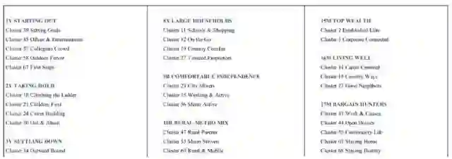 聚类的一个有趣的真实应用案例是营销数据提供商 Acxiom 的人生阶段聚类系统 Personicx。这项服务将美国家庭分成了 70 个不同的聚类,它们分属于 21 个人生阶段分组,可以被广告主用于投放定向 Facebook 广告、陈列式广告和直邮广告等。