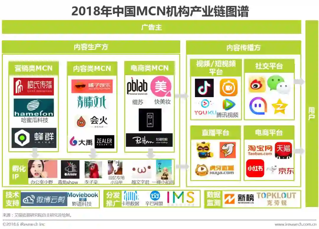 MCN(Multi-channelNetworks),意为多频道网络,原是依托于Youtube平台机制而创造出的商业模式。MCN与平台合作,为签约网红提供推广营销、流量变现等多种商业化服务,并按规则取得收入分成。MCN模式在被引入中国后,迅速发展壮大,成为网红经济中极为重要的一环,有力地促进了网红经济整体产业的发展。