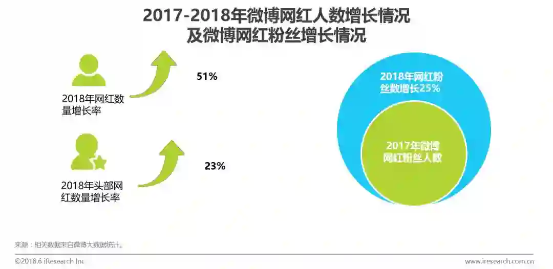 2018年,粉丝规模在10万人以上的网络红人数量持续增长,较去年增长51%。其中粉丝规模超过100万人的头部网红增长达到了23%。而网红数量增长的一大原因是粉丝数量的增长,截止2018年4月,中国网红粉丝总人数保持了之前不断增长的势头,达到5.88亿人,同比增长25%。