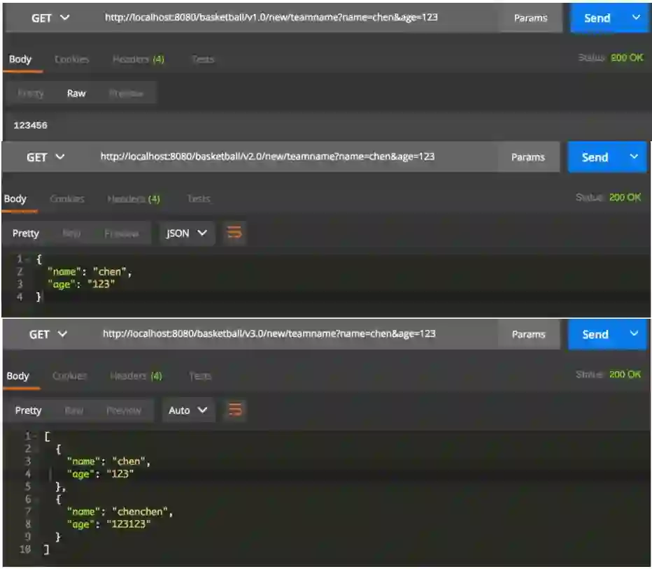 (4)运行程序,别忘了配置Tomcat,使用Postman进行接口测试,分别对上面的三个接口请求: