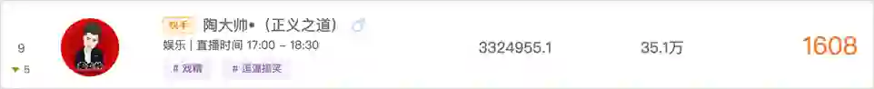 来自吉林四平的@陶大帅 ,以直播唱歌、跳舞等才艺为主,常常戏精附体的他具有很强的娱乐属性。