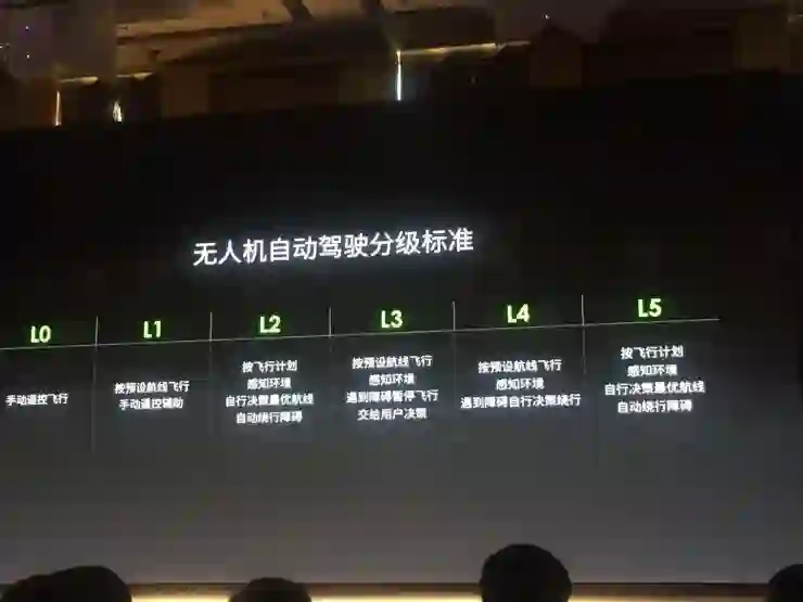 目前,无人驾驶系统基本上形成了普遍认同的分级标准,彭斌对无人机的自动化驾驶也做了分级,从L0到L5。彭斌认为目前极飞的无人机达到了L4的阶段,明年争取达到L5。
