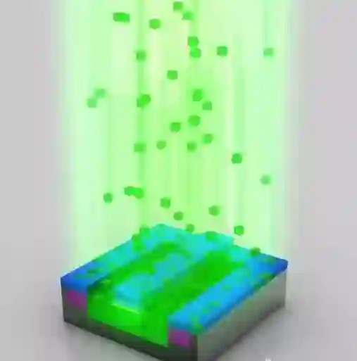 清除光刻胶:离子注入完成后,光刻胶也被清除,而注入区域(绿色部分)也已掺杂,注入了不同的原子。注意这时候的绿色和之前已经有所不同。