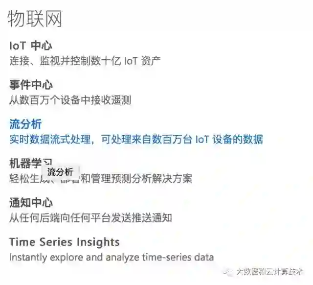 前面是一个抽象的体系结构,再来看下微软提供了那些具体服务,在Azure的物联网分类里面一共有下面6个服务: