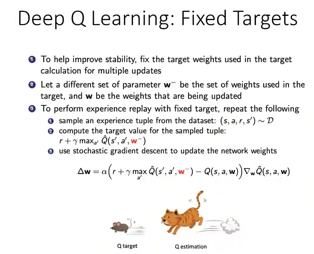 第四课的主题是价值函数的近似,包括价值函数近似的基本原理、利用价值函数近似进行预测和控制、DQN 在雅达利游戏中的应用等。