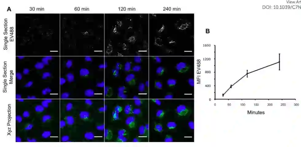 参考文献:Roberts-Dalton HD, Cocks A, Falcon-Perez JM, Sayers EJ, Webber JP, Watson P, Clayton A, Jones AT. Fluorescence labelling of extracellular vesicles using a novel thiol-based strategy for quantitative analysis of cellular delivery and intracellular traffic. Nanoscale. 2017 Sep 7.
