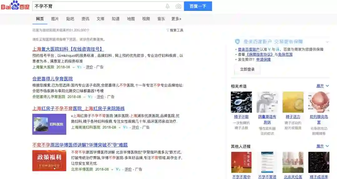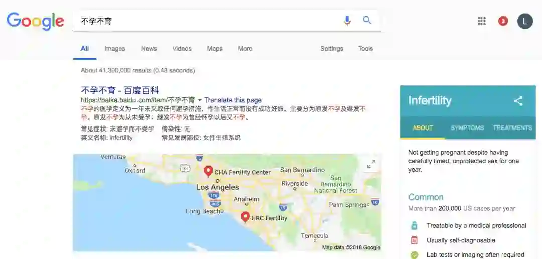►同一关键词“不孕不育”,谷歌与百度截然不同的搜索结局