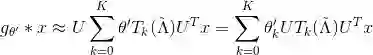 ,论文Wavelets on graph via special graph theory提出了利用切比雪夫Chebyshev多项式拟合上文卷积核的方法,来降低计算复杂度。卷积核