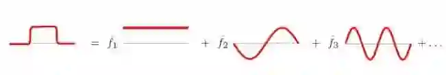 傅里叶变换的本质是任意一个函数可以表示为若干个正交函数(sin,cos函数)组成的线性组合,如下图所示: