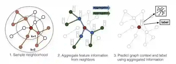 (1)先对邻居随机采样,降低计算复杂度(图中一跳邻居采样数=3,二跳邻居采样数=5)