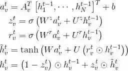 这里只介绍一下基于GRU的GGNN,传播过程可以表示为: