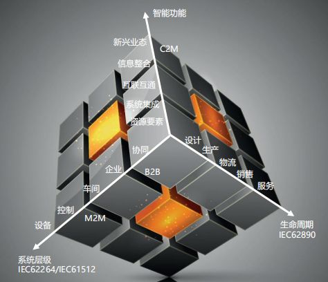 整个智能制造试图从M2M到B2B、C2M,最后做一个横向和垂直的贯穿。这其实与德国倡议的工业4.0的三个集成:纵向、横向、端到端的整合不谋而合。