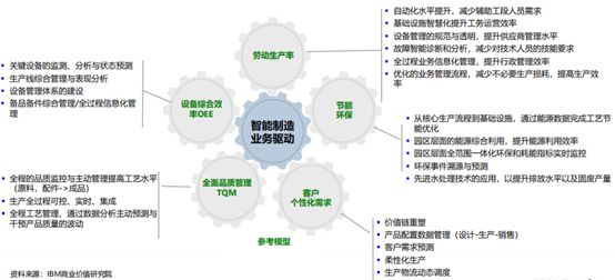 在最近召开的十三届全国人大二次会议举行记者会上,科技部相关负责人提到了科技创新“三步走”战略,即到2020年进入创新型国家,到2035年左右进入创新型国家前列,到2050年要成为世界科技强国。这个战略同时也说明了整个业务驱动智能制造与重塑竞争力的产业变革大趋势。在这一大趋势中,IBM有责任引导这一进程,IBM认为,智能制造的五大业务驱动力:劳动生产率、设备综合效率OEE、全面品质管理TQM、客户个性化需求、节能环保。