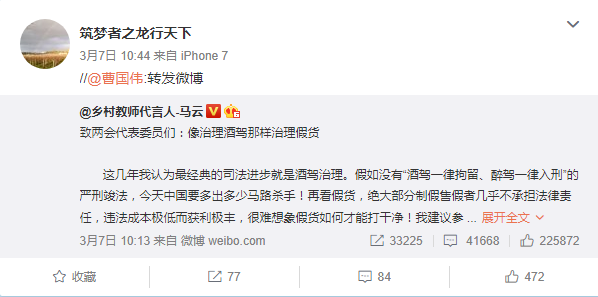 马云表示:“我告诉阿里,不要打嘴仗,不要为了阿里而做这件事,我们觉得这是个责任。这是公义,必须要有这个担当。别人很容易把这个当成两家公司、三家公司的竞争,我没兴趣,所以我没评论。但我希望,我们需要有一个环境,商业竞争就是商业竞争,商业竞争不能上升到背后的搞黑洞”。