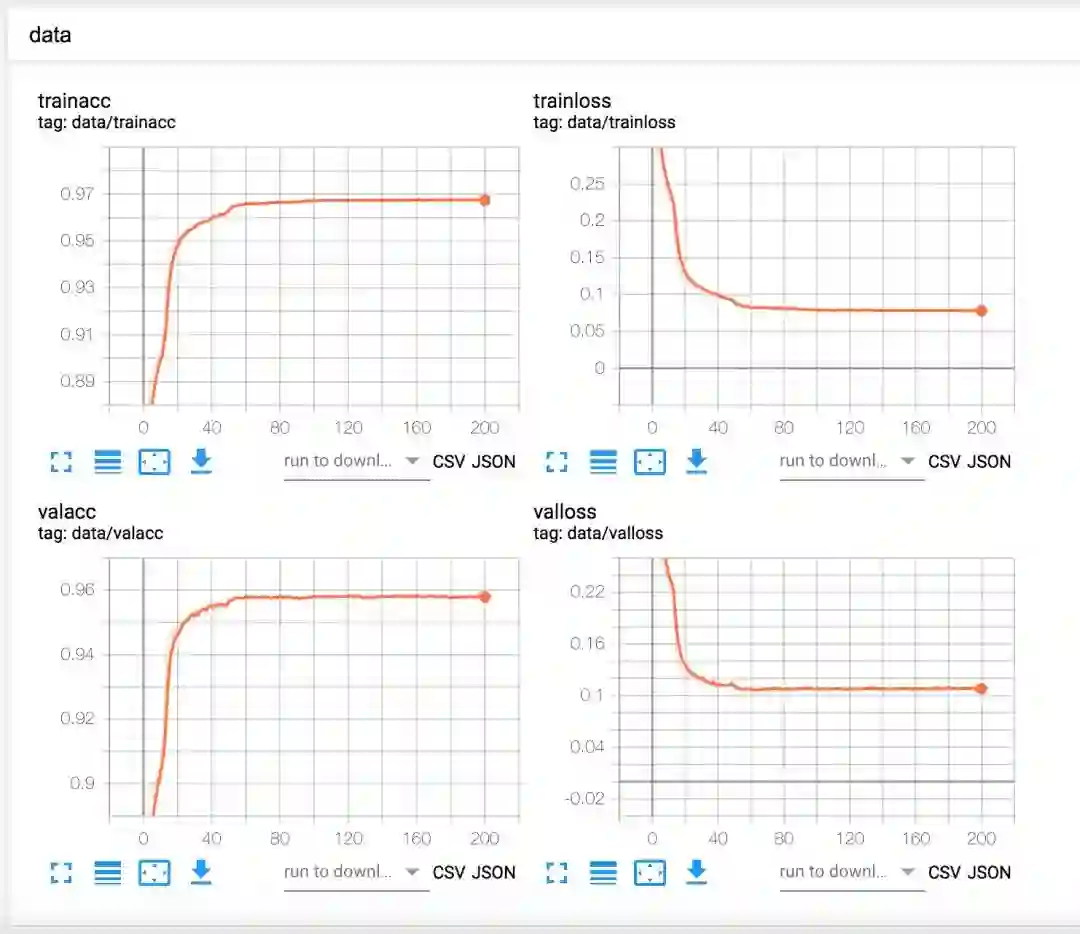 另外我们使用了tensorboardX工具来进行可视化,工具使用我们之前已经介绍过了,大家可以去查看之前图像分类的内容,训练的结果如下: