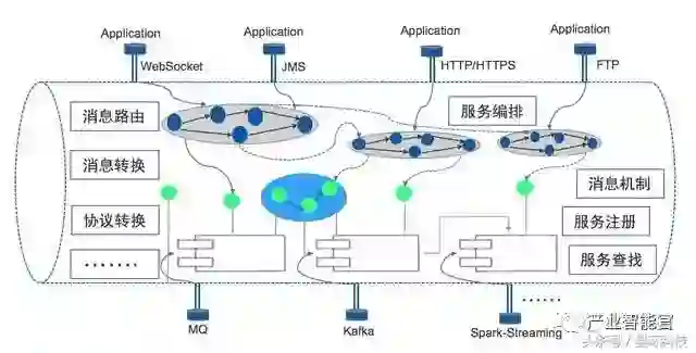 如上,一方面,通过SockJs、WebSocket、HTTP协议将流数据包装为各种服务,构建与移动端应用和其他外部系统前后端的消息通道,对应用开发程序员屏蔽各种消息编码解码算法细节;另一方面,通过代理组件的编写和统一的元消息语义,可以将异构系统的kafka、MQ等消息中间件设施和主流的spark streaming流处理框架,当成流处理平台消息总线设施一部分,实现与上述设施和流计算框架的无缝集成;此外,用户也可以针对特定的数据,定制自己的持久化方案,支持将数据实时写入主流的数据库。