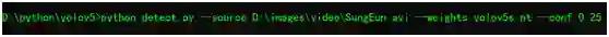 python detect.py --source D:\images\video\SungEun.avi --weights yolov5s.pt --conf 0.25