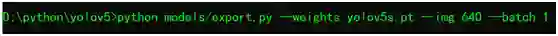 # export at 640x640 with batch size 1python models/export.py --weights yolov5s.pt --img 640 --batch 1