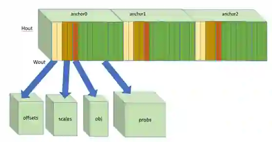 每个框的维度大小为 cx,cy,w,h,conf + number of class, 图示如下: