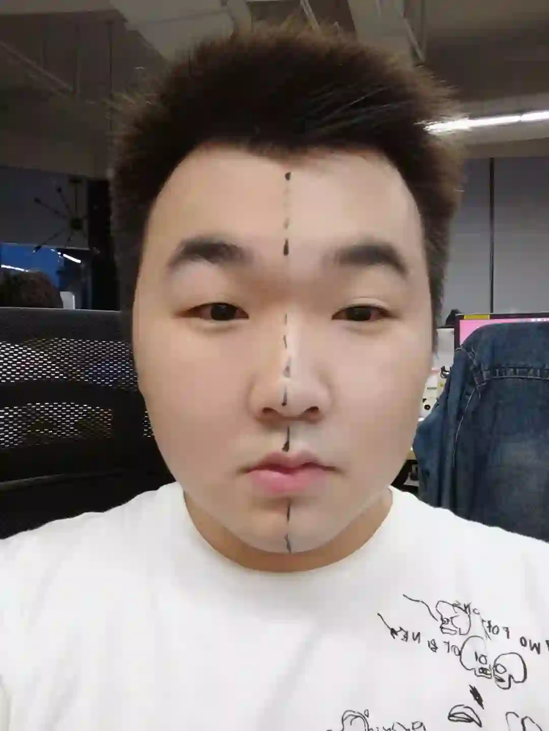 (左脸:天然脸 右脸:涂了BB霜)