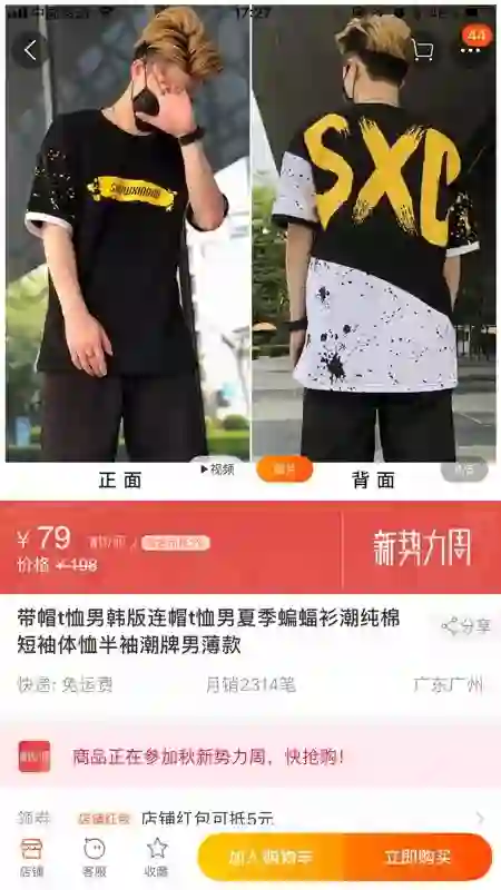 用淘宝搜索帽衫