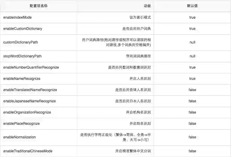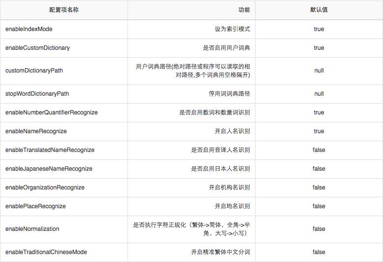 对于更高级的配置,HanLP分词器主要通过class path下的hanlp.properties进行配置,请阅读HanLP自然语言处理包文档以了解更多相关配置,如: