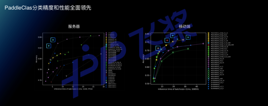 可以看出,不管是在服务器端还是在移动端,PaddleClas 在分类精度和性能层面均实现了大幅度的提升。