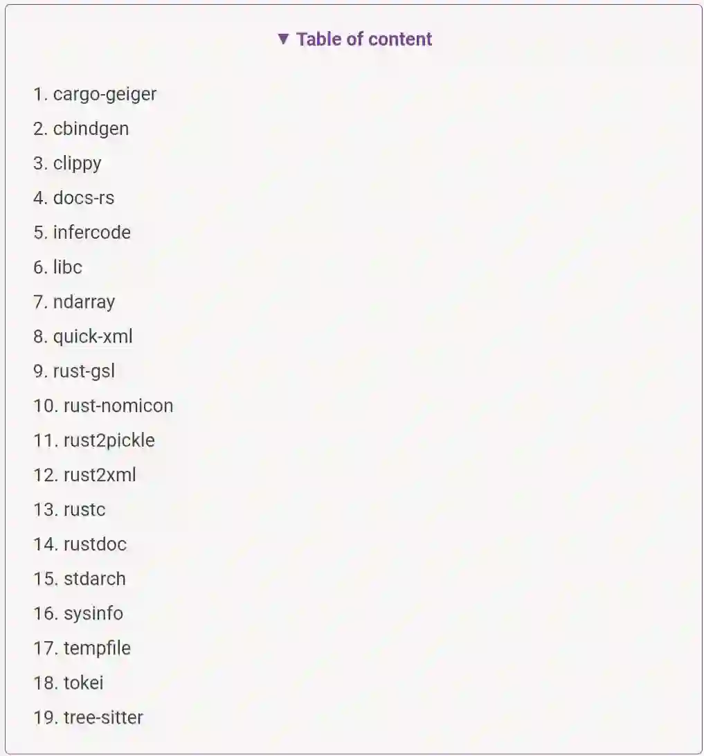 首先是针对已有软件项目的跨语言代码转换迁移,华为自研了一套 TXL 代码转换工具,实现了从 C 项目到 Rust 项目迁移的能力,并基于模式提升了 C 代码的安全代码比例;其次是通过深度代码学习,让机器替人学习一些简单的任务,比如华为自研的深度代码学习 Corder 工具已经能够实现 unsafe Rust 代码自动分类,准确率能够达到 93% 以上;还有 Rust 文档方面的优化工作,比如通过生成可互联的变量类型文档,使得 rustdoc 更容易导航。Guillaume Gomez 当前在 Rust 社区重点负责的就是 rustdoc 优化工作,从而让 Rust 文档更快、更轻量、更具交互性。他既是 rustdoc 团队负责人,也是 Rust 官方 dev-tools(开发工具团队)成员。