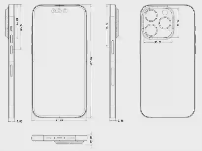 据最新消息,Max Weinbach 在社交平台晒出了 iPhone 14 Pro / Max 的多张 CAD 设计图和详细示意图,显示其可能具有更突出的摄像头凸起,以及更厚的整体设计。基于这些示意图,设计博主 Apple Lab 制作了一系列精致的渲染图,生动地展示了其设计。