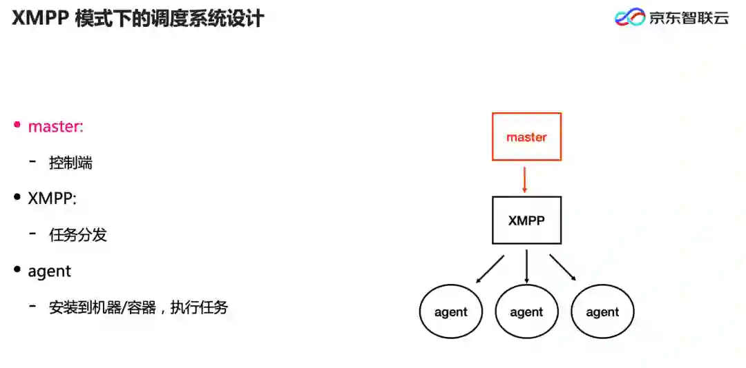 XMPP 本身性能强劲,单个集群可以应付百万客户端规模,实现秒级调度、执行。