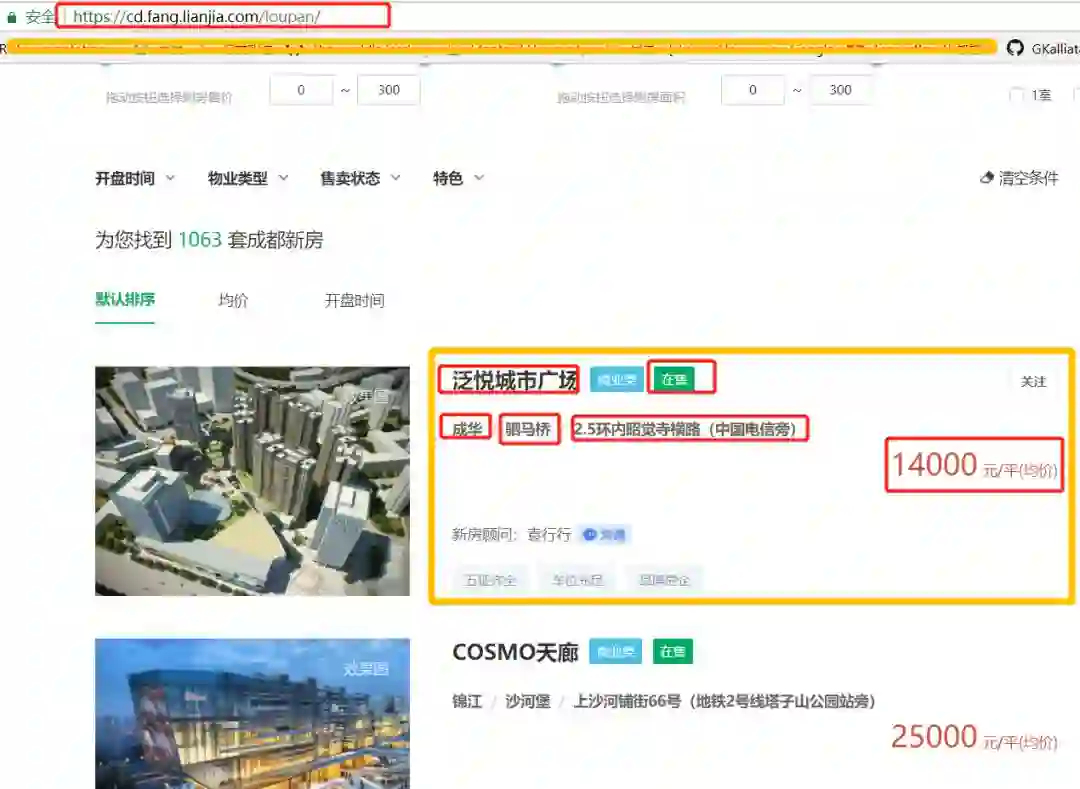 打开链家的新房主页,任意选择一个城市,然后按楼盘来查找,就是下面这个。