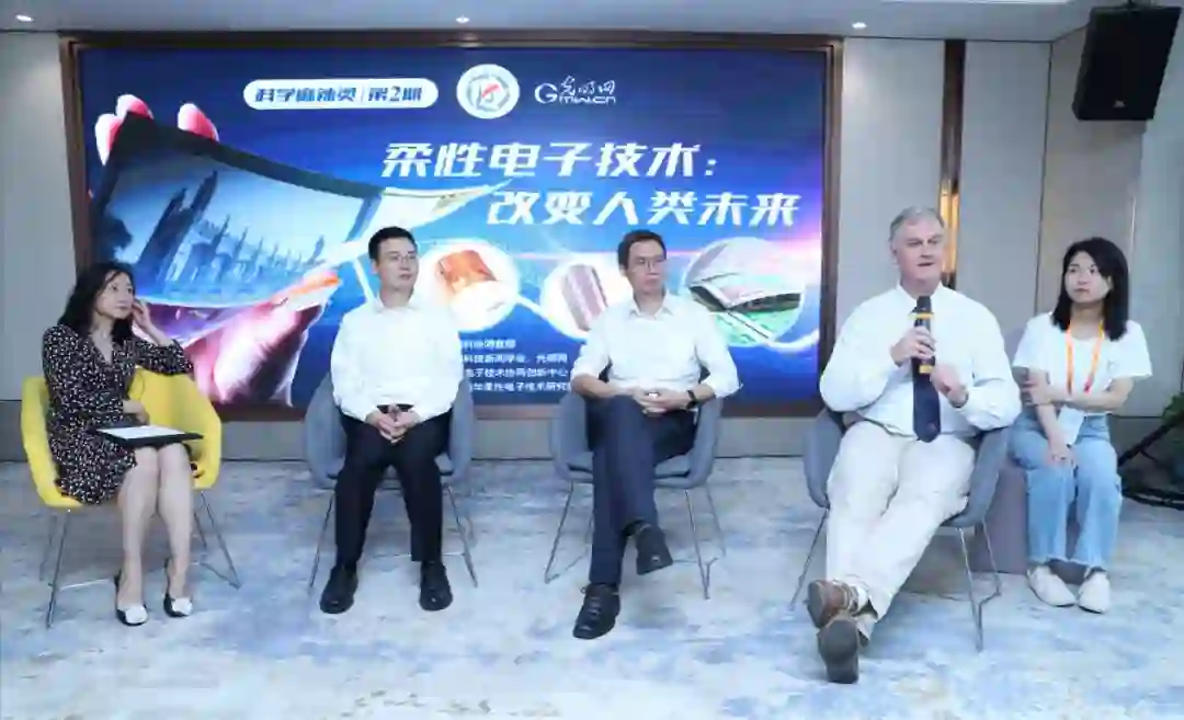 澳大利亚昆士兰大学教授、澳大利亚科学院院士、澳大利亚ARC荣誉院士保罗·伯恩(Paul Burn),清华大学教授、国家973项目首席科学家、清华大学柔性电子技术研究中心主任、柔性电子技术协同创新中心主任冯雪,新加坡南洋理工大学材料科学与工程学院教授陈晓东三位专家参加活动。活动由中央电视台科教频道《走近科学》栏目制片人、中国科技新闻学会科技影视专委会秘书长冯其器主持。