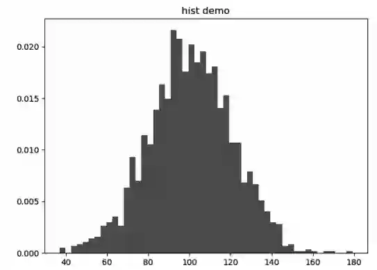 • normed:对数据进行正则化。决定直方图y轴的取值是某个箱子中的元素的个数 (normed=False), 还是某个箱子中的元素的个数占总体的百分比 (normed=True)。