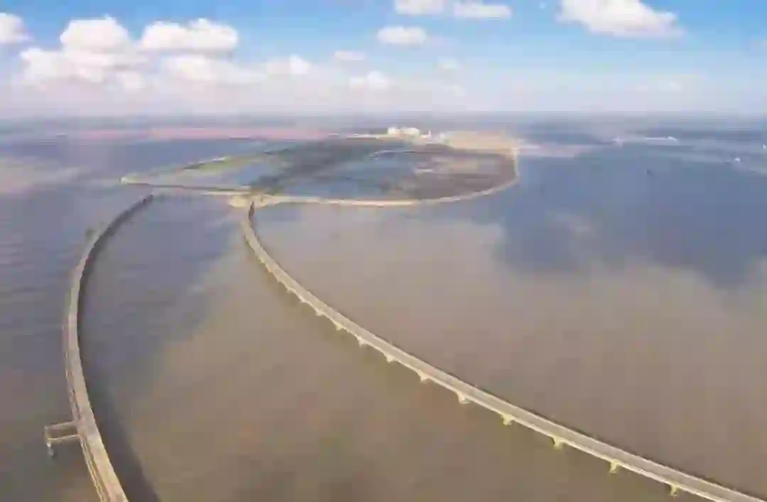 如东洋口港航拍图,可见中心位置的滩涂围堰丨南通市政府