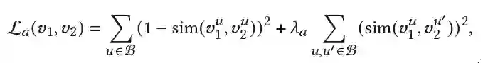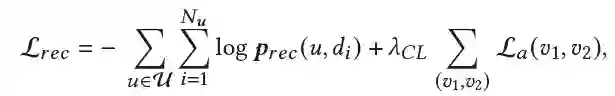 Multi-View Preference Mapper:由于前面得到的信息是multi-view的(如单词、实体就是两种不同view),这里我们基于对比学习,学习不同view的内在信息,进而得到更准确地表示。其核心思想是:同一个用户的不同view信息应当相关,而不同用户应当无关。其目标函数如下: