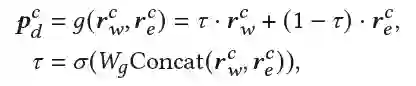 Historical Item Learner:用户历史喜欢的商品也可以辅助用户建模。对于历史商品,我们采用和历史实体一样的建模方式。但不同于历史实体,我们不知道当前商品的表示(事实上,当前商品正好是我们的预测目标)。因此我们利用当前实体表示和当前单词表示的组合来代替当前商品表示,最终得到历史商品表示 :