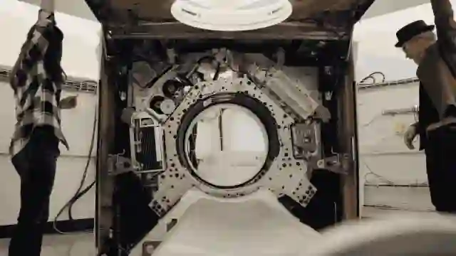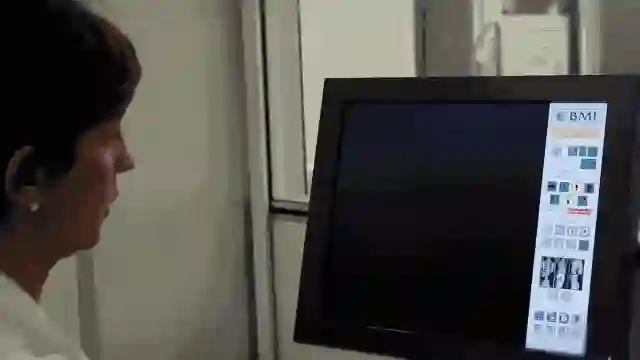这是一台 CT 机,在扫描架中有一个 X 光球管,对面则是一排探测器。当扫描架绕着人体旋转一圈,X 光也照了一圈,经计算机处理后就能得到截面图。